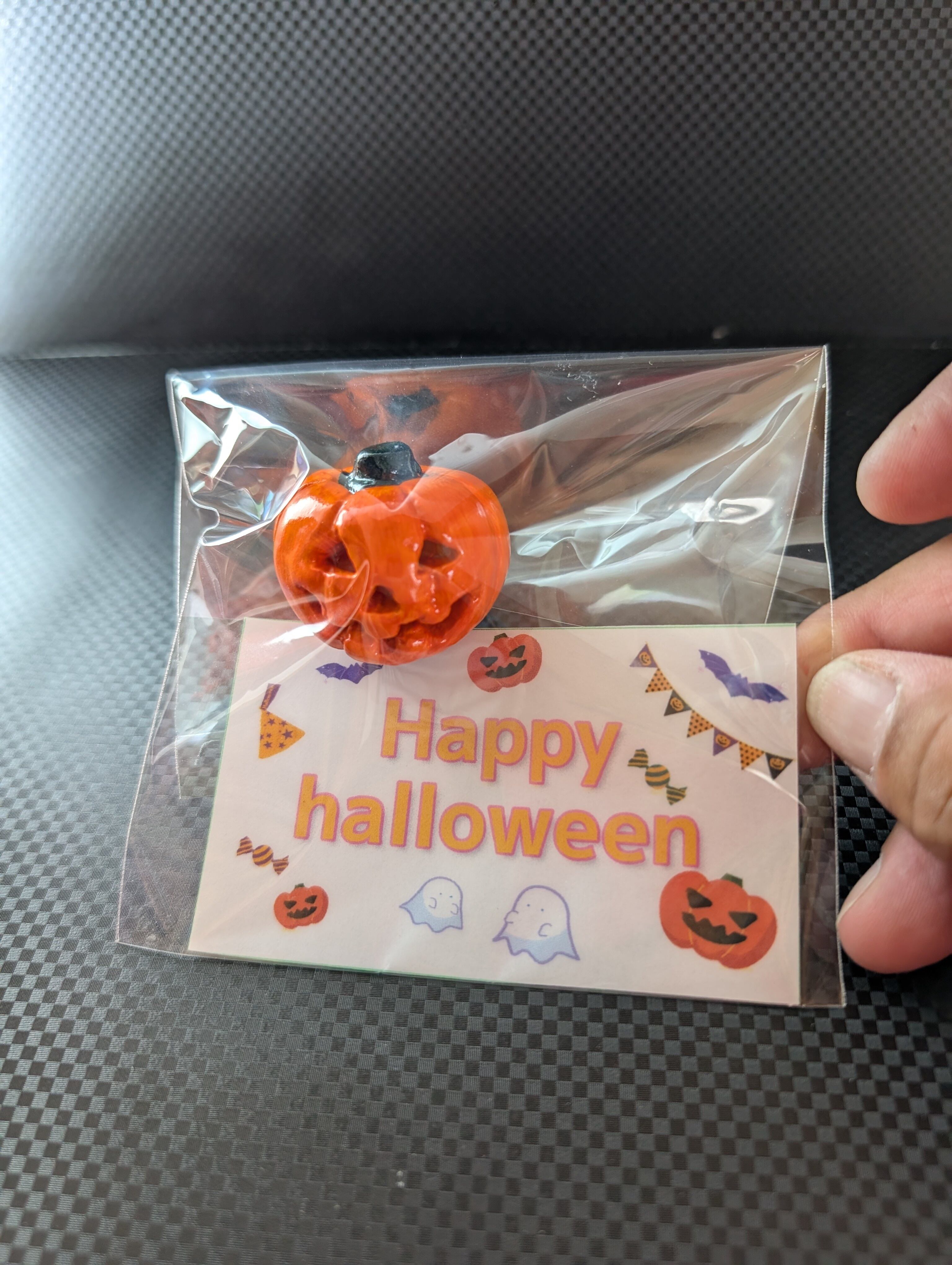 かわいらしい笑顔が印象的な手のひらサイズのジャック・オー・ランタンです!