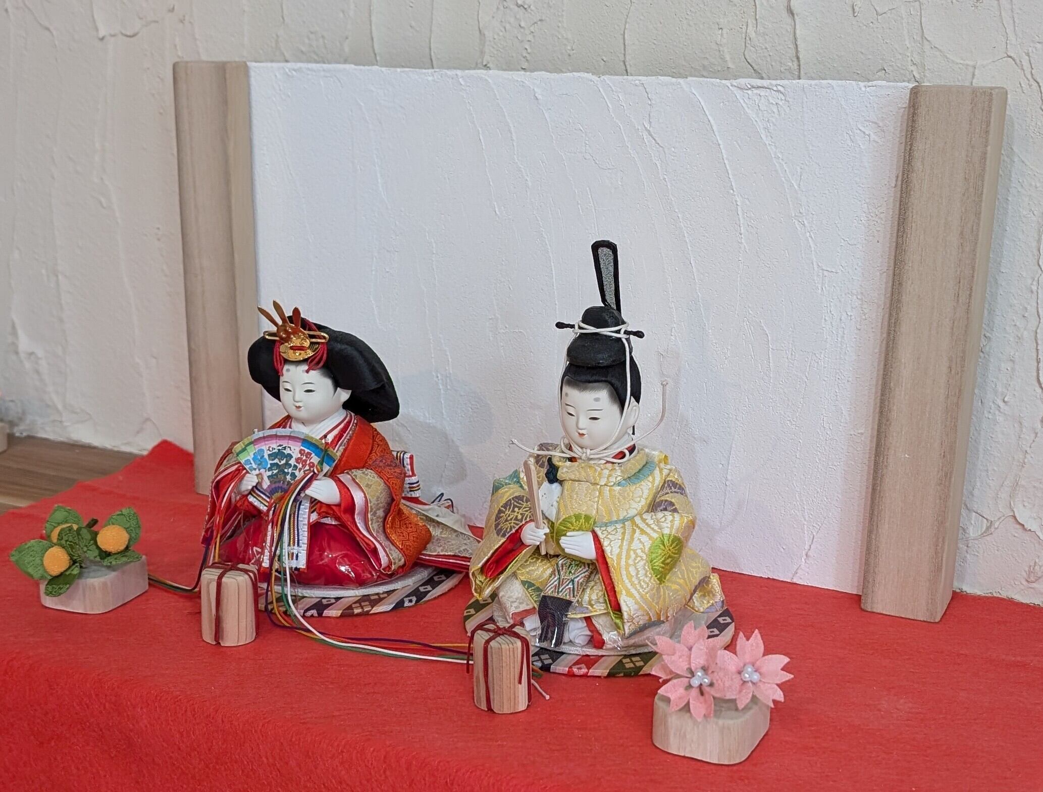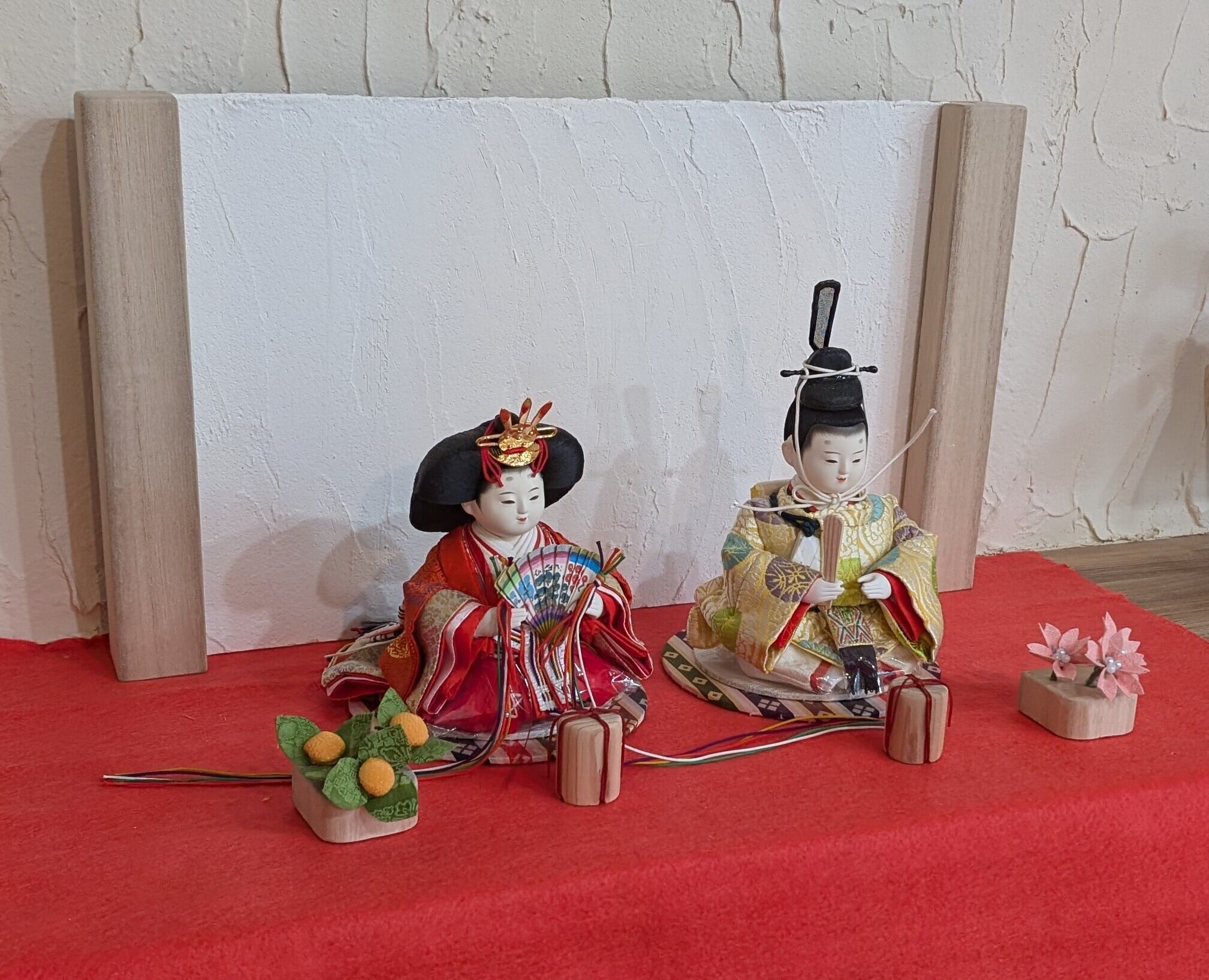 漆喰の壁を再現した衝立にシンプルに飾ることでメインのお雛様がより可愛く飾ることが出来ます。